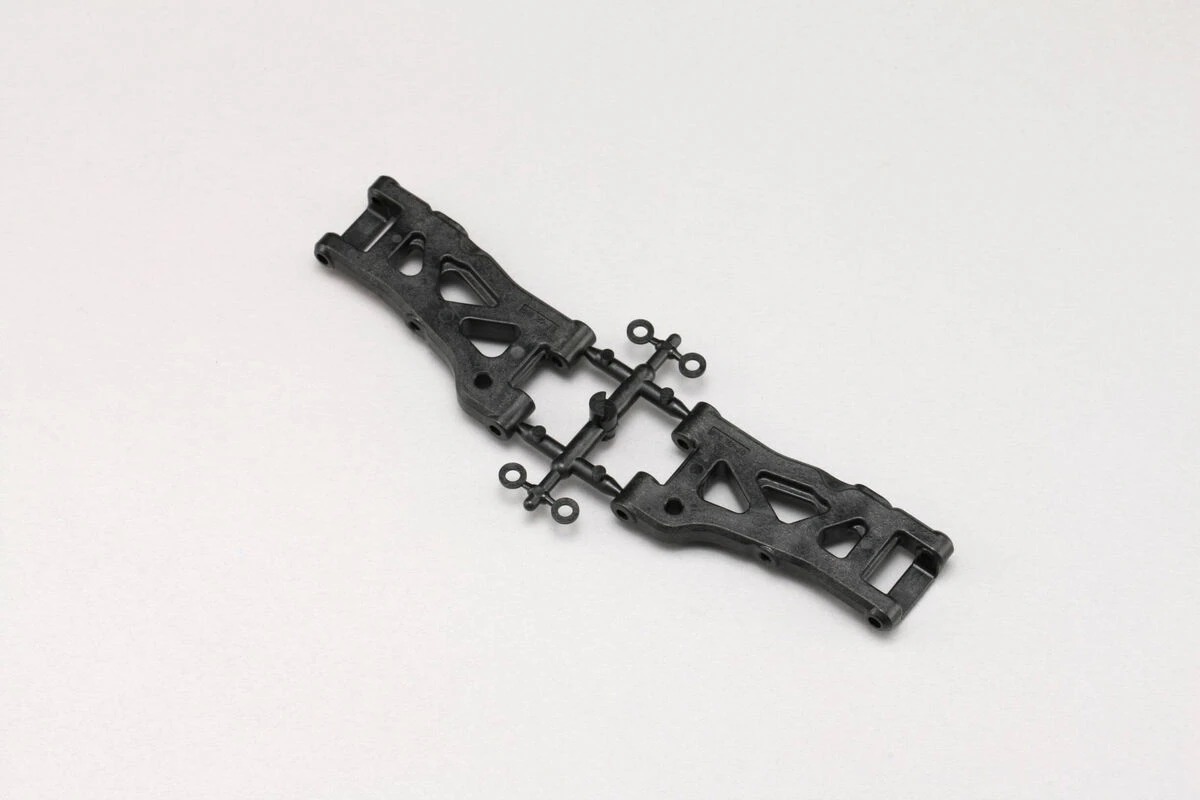Optional parts for BD10, graphite molded rear suspension arm. The distance between the suspension pins is 57mm, and the distance from the inner suspension pin to the shock pivot is 42mm. Harder than the standard suspension arm, it can increase the response of the machine.